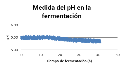 Gráfica de la medida de la temperatura durante la fermentación al 90%