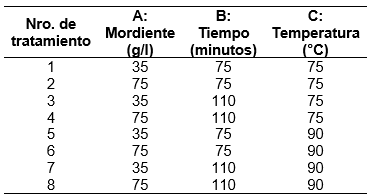colorante natural inflorescencia de colli, corresponde a un diseño factorial 2, de 8