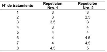 tratamientos con dos réplicas, en total 16 tratamientos.