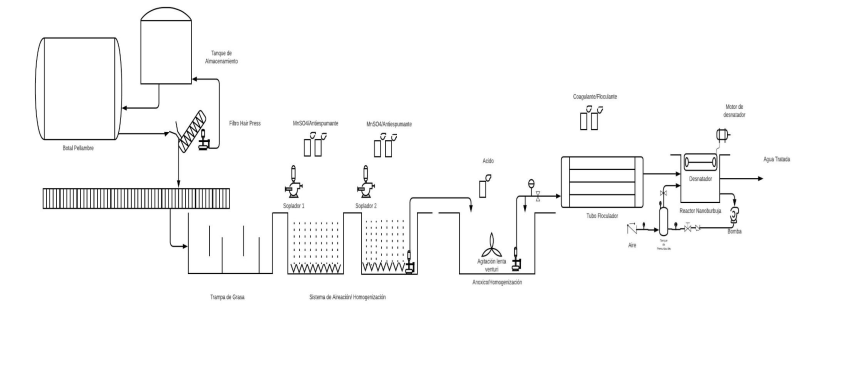 Diagrama de flujo del sistema de tratamiento de aguas residuales industriales provenientes de la etapa de pelambre.