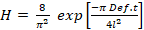 Donde H es un número adimensional que representa el contenido de humedad del sólido, X0 es el contenido de humedad inicial en base seca; Xe es la humedad de equilibrio en base seca; t es el tiempo de secado y L es el espesor del material que se seca.