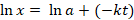Y= In(x); A=In(a), Bx=-kt, B=-k y x=t ………………. (ecuación 7)