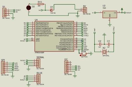 Los materiales usados para la construcción de este circuito son: Microcontrolador amtega328, cristal de 16MHz, Switch, condensadores de 22pF, base para el circuito integrado de 28 pines, resistencia de 220 ohm, módulo con sensor strain gauge, diodo de protección, led, conectores molex, módulo lector/grabador de tarjetas microSD, tarjeta microSD de 8GB, regulador de voltaje 7805, batería de 9v, estaño y pasta de soldar.