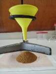 Para la determinación de la densidad aparente de la panela se utilizaron dos probetas graduadas de 80 ml y una balanza digital de precisión A&D GF-3000. El procedimiento seguido fue el siguiente: Se pesaron las probetas vacías para determinar la masa de éstas. Una vez obtenidas las masas de las probetas vacías, se procedió a llenar las mismas con panela granulada hasta un volumen de 50 ml. Luego se pesaron las probetas para hallar la masa total y hallar la densidad aparente. En la Figura 7 se muestra una imagen de este proceso que se realizó con cinco muestras y los resultados obtenidos se muestran en la Tabla 2. Por lo tanto, la densidad aparente promedio obtenida fue de 0.54 g/ml. De las muestras se obtuvieron los valores que se muestran en la Tabla 2.