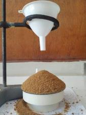 Por medio del termómetro se controló la temperatura de calentamiento de la hornilla eléctrica. Se empezó a calentar y al mismo tiempo con ayuda de una varilla de vidrio se agitó la muestra de panela contenida en el vaso. Cuando se alcanzó la temperatura de 50°C se observó que empezaba la formación y compactación de pequeños grumos. Esta formación de grumos, aparentemente caramelizados, en una muestra más grande puede ocasionar dificultades en el movimiento de las máquinas homogeneizadoras.