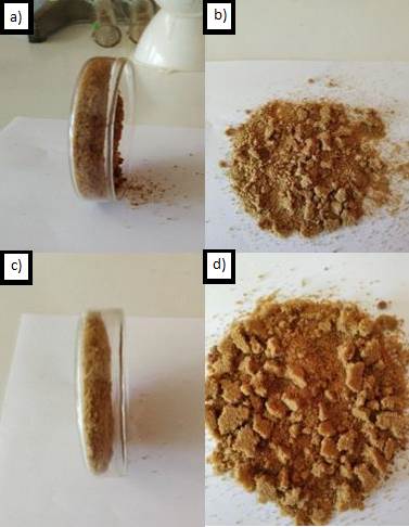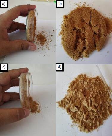 (a) y (b) Panela granulada. (c) y (d) Panela pulverizada