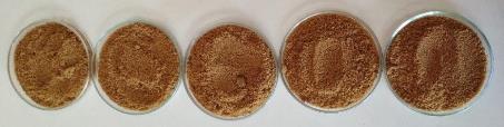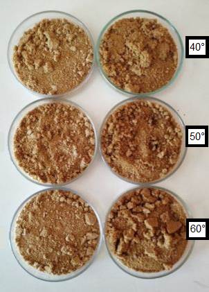 Posteriormente se calentaron las placas Petri hasta los 50°C. Se cronometran 20 min y luego se procedió a retirar dos placas Petri cada una con un tipo de panela. Se observó una mayor compactación y dureza en la muestra acompañada de formación de grumos. Los resultados se observan en la Figura 14.