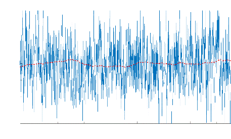 En la Figura 21 se muestra una de las gráficas obtenidas. De color azul se muestra la señal que envió el strain gauge y de color rojo la señal filtrada con un filtro denominado media móvil que toma el promedio de 10 valores anterior para registrar una medida. Este filtro fue mejor, en este caso, frente a uno de segundo orden.