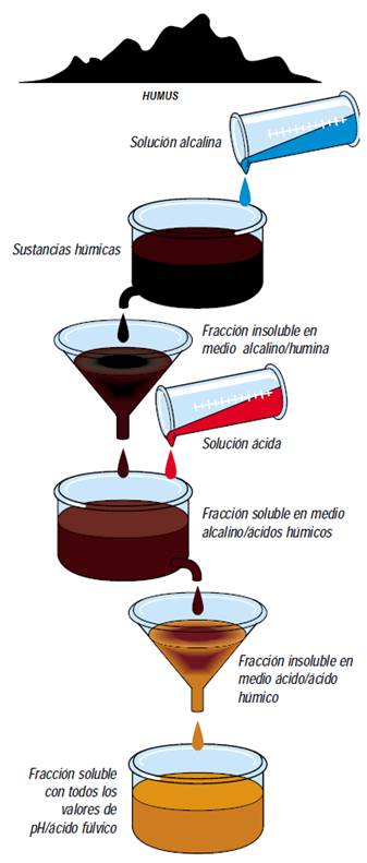 La extracción es el primer paso para aislar y caracterizar las sustancias húmicas, evitando la extracción indirecta de otro tipo de sustancias con características no húmicas (carbohidratos, grasas y aminoácidos) que puedan interferir. Aún no existe un extractante que pueda cumplir el 100% de los objetivos necesarios.
