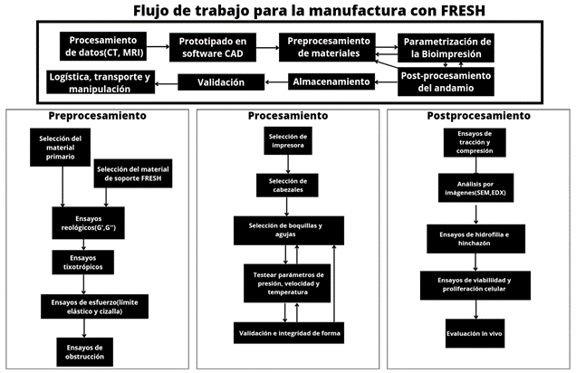 Flujo de trabajo propuesto dirigido hacia el desarrollo de TEMP bioimpresión FRESH.
